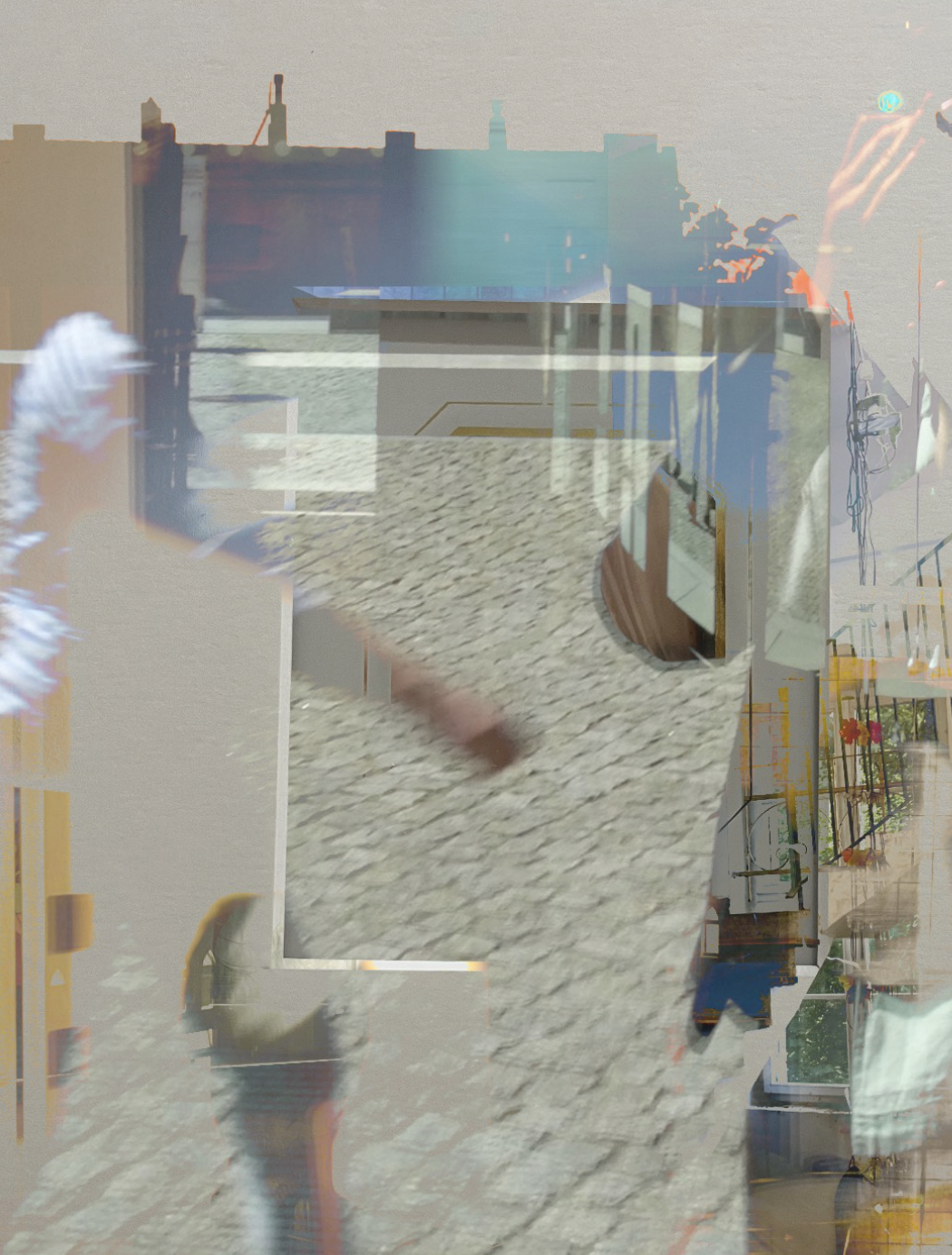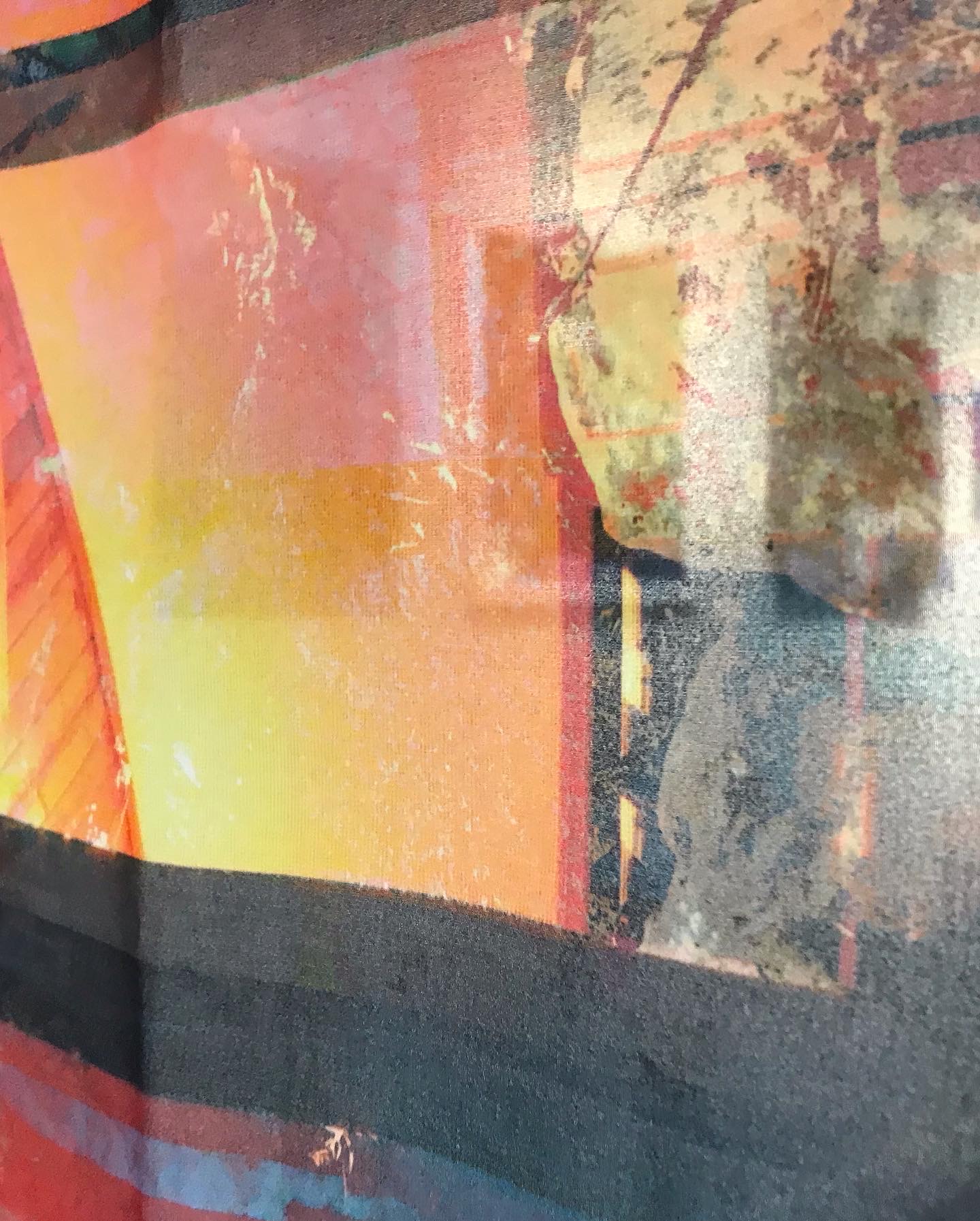 The following images are from the Heimat project undergraduate thesis exhibition and the final thesis show “Artwalk.” Pieces were printed on paper, acetate, and chiffon. Transparency was emphasized through the fabric in order to integrate the images in the physical space they were shown in; one can see what is behind and around it as well, transforming the exhibition space as well as the work itself.