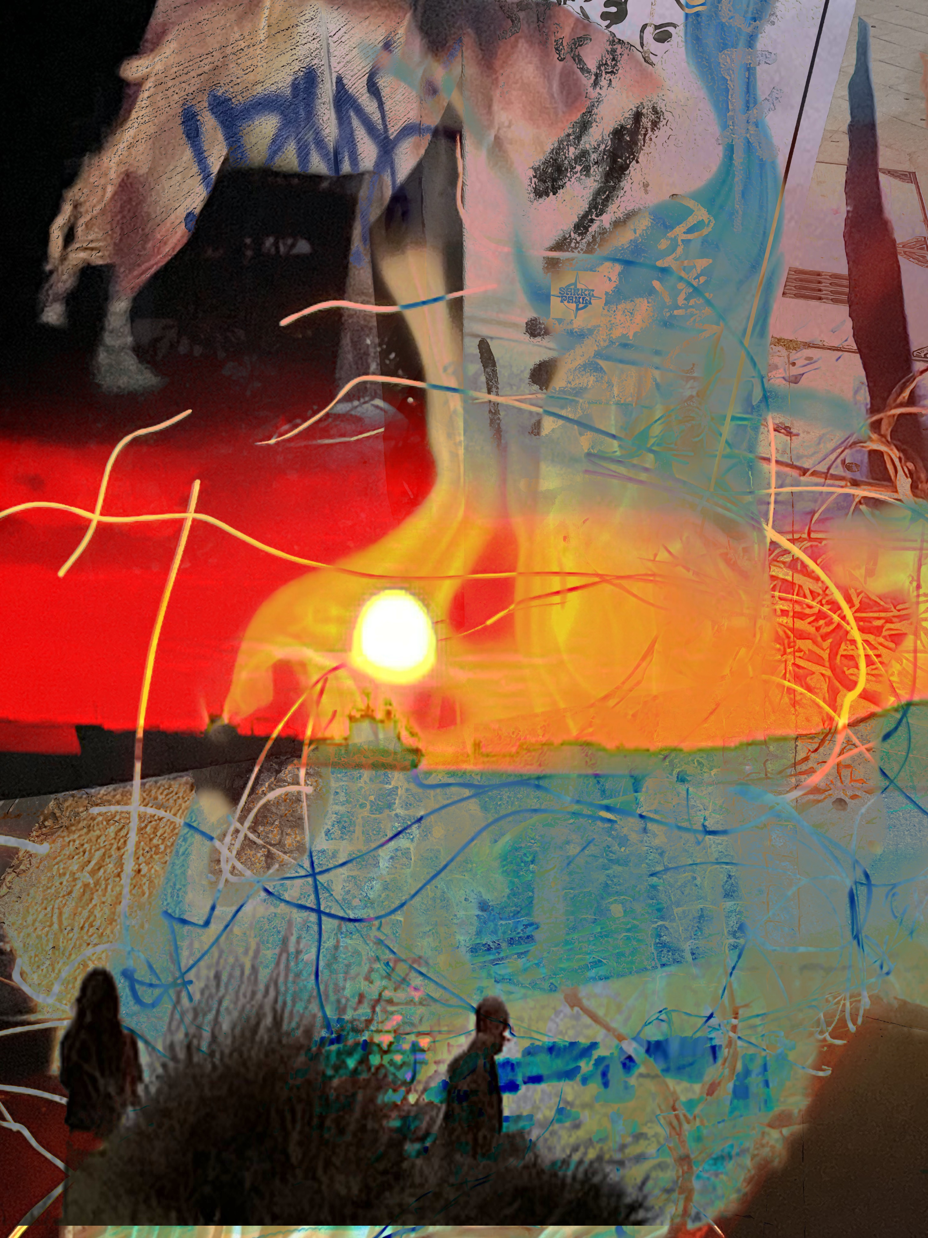 combining digital and traditional media to create layered images