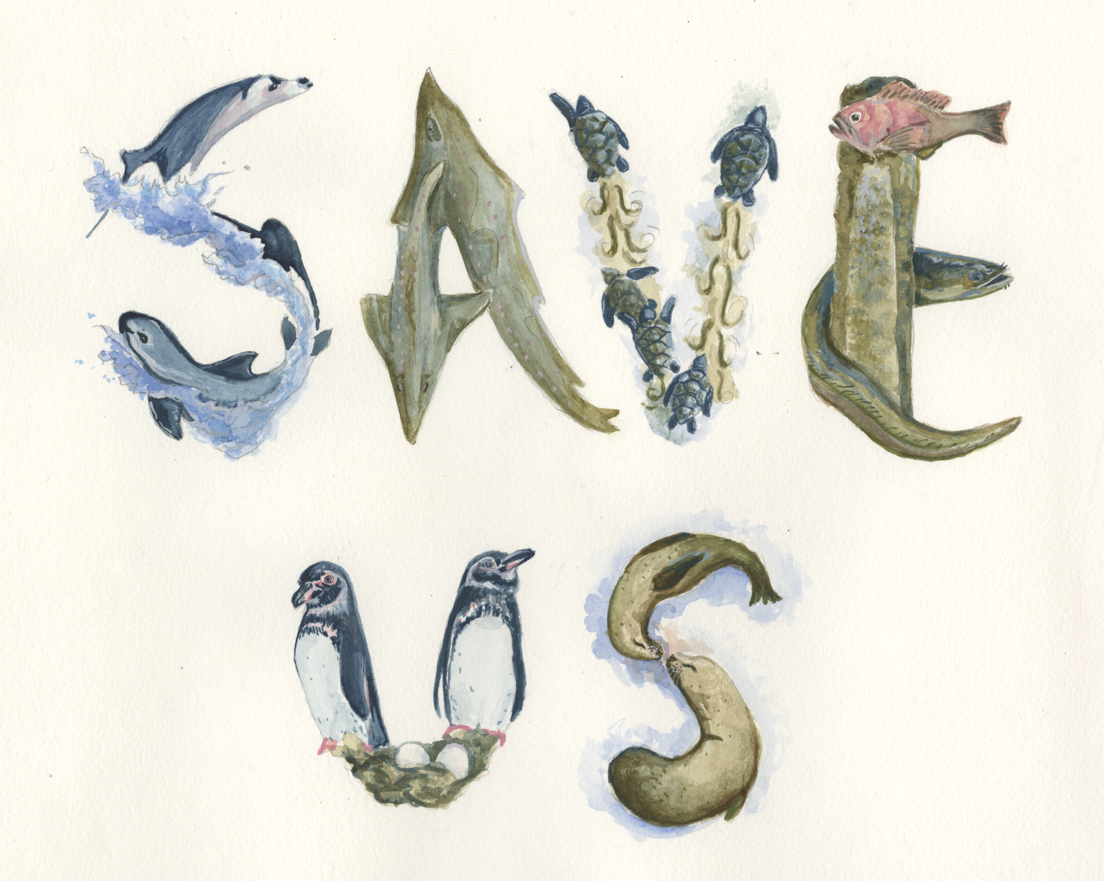 Save Us, watercolor on paper, 2022